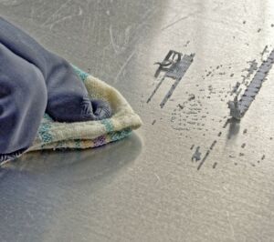 Es sollten nur Bürsten und Pinsel aus Naturmaterial verwendet werden. Der Arbeitsgang muss innerhalb der Teilflächen immer von unten nach oben durchgeführt werden. Bei mehreren Farbschichten kann eine zweimalige Anwendung erforderlich sein. Abgespülte Farbpartikel mittels Malerflies oder entsprechendem Filter von der Reinigungsflüssigkeit trennen.